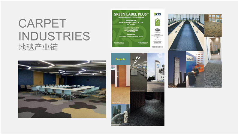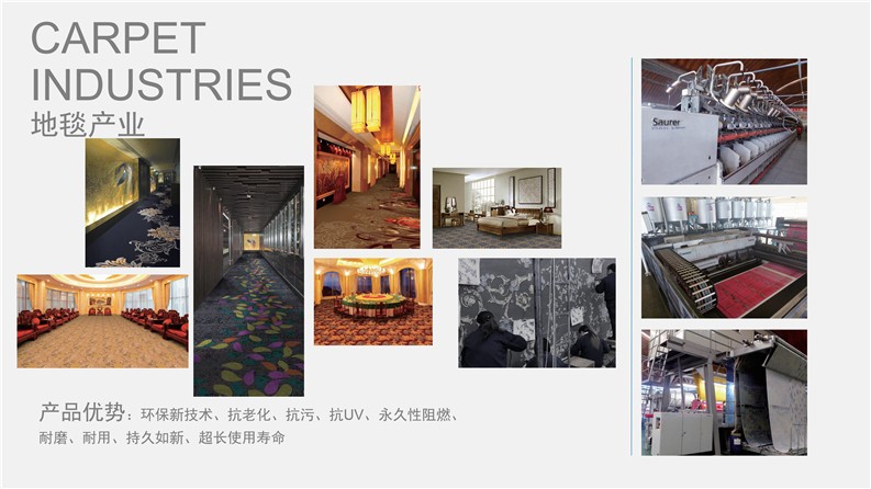 企業(yè)擁有眾多國(guó)際領(lǐng)先的先進(jìn)生產(chǎn)設(shè)備,其中包括德國(guó)威爾頓電腦提花地毯生產(chǎn)線、英國(guó)一體化后整理設(shè)備、美國(guó)多套簇絨地毯生產(chǎn)線、奧地利Zimmer高清印花生產(chǎn)線、BCF滌綸地毯長(zhǎng)絲生產(chǎn)線,年產(chǎn)量可生產(chǎn)各類(lèi)地毯1000多萬(wàn)平方米,企業(yè)自主專(zhuān)利技術(shù)研發(fā)生產(chǎn)“天絲”特種長(zhǎng)絲纖維核心競(jìng)爭(zhēng)產(chǎn)品,開(kāi)發(fā)多款獨(dú)特的高質(zhì)量產(chǎn)品,具有抗老化、永久性阻燃、耐磨、耐菌、耐污染、持久如新及超長(zhǎng)使用壽命等多種優(yōu)勢(shì)性能,是普通傳統(tǒng)纖維絲所無(wú)法比擬的,公司通過(guò)ISO9001:2000質(zhì)量管理體系、ISO14001:20004環(huán)境管理體系、GB/T28001-2001職業(yè)健康安管管理體系認(rèn)證等,以及先進(jìn)的生產(chǎn)管理水平,確保地毯產(chǎn)品品質(zhì)的穩(wěn)定性和可持續(xù)性質(zhì)量保證。